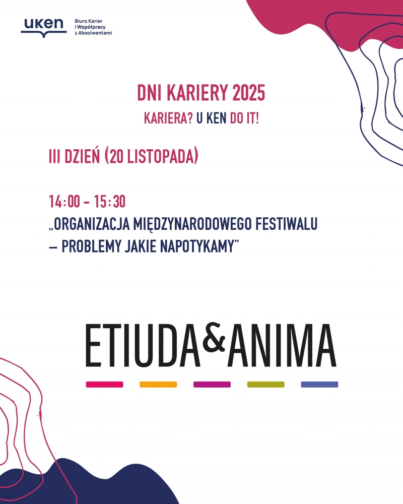 Międzynarodowy Festiwal Filmowy Etiuda&Anima istnieje już 32 lata. Przez ten okres przy jego organizacji przewinęły się setki osób dokłądając swoją cegiełkę do jego rozwoju. Prawie wszyscy członkowie obecnego biura organizacyjnego zaczynali swoją karierę na festiwalu jako wolontariusze. Czy praca może być ciekawa i absorbująca? Tak!